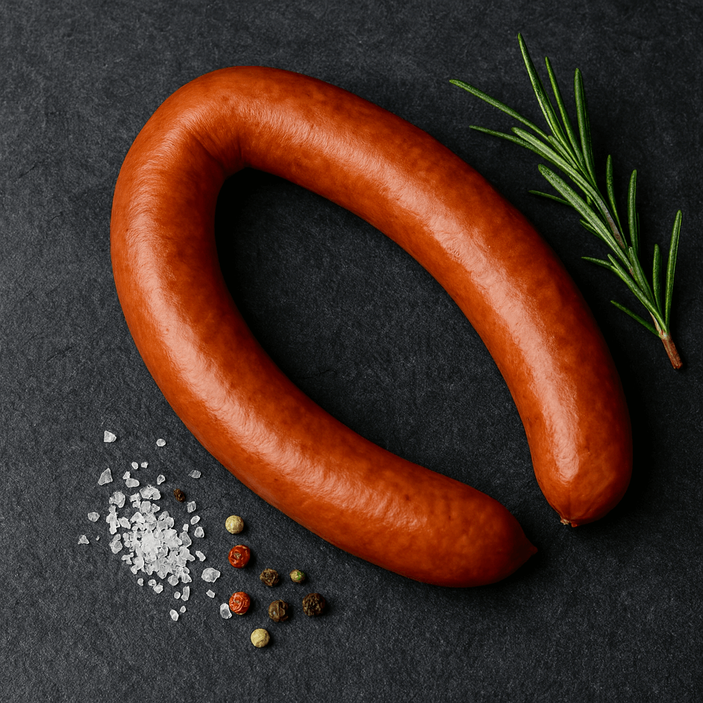 Laat je verrassen door de volle, authentieke smaak van deze rookworst – een heerlijk stukje traditie op tafel!